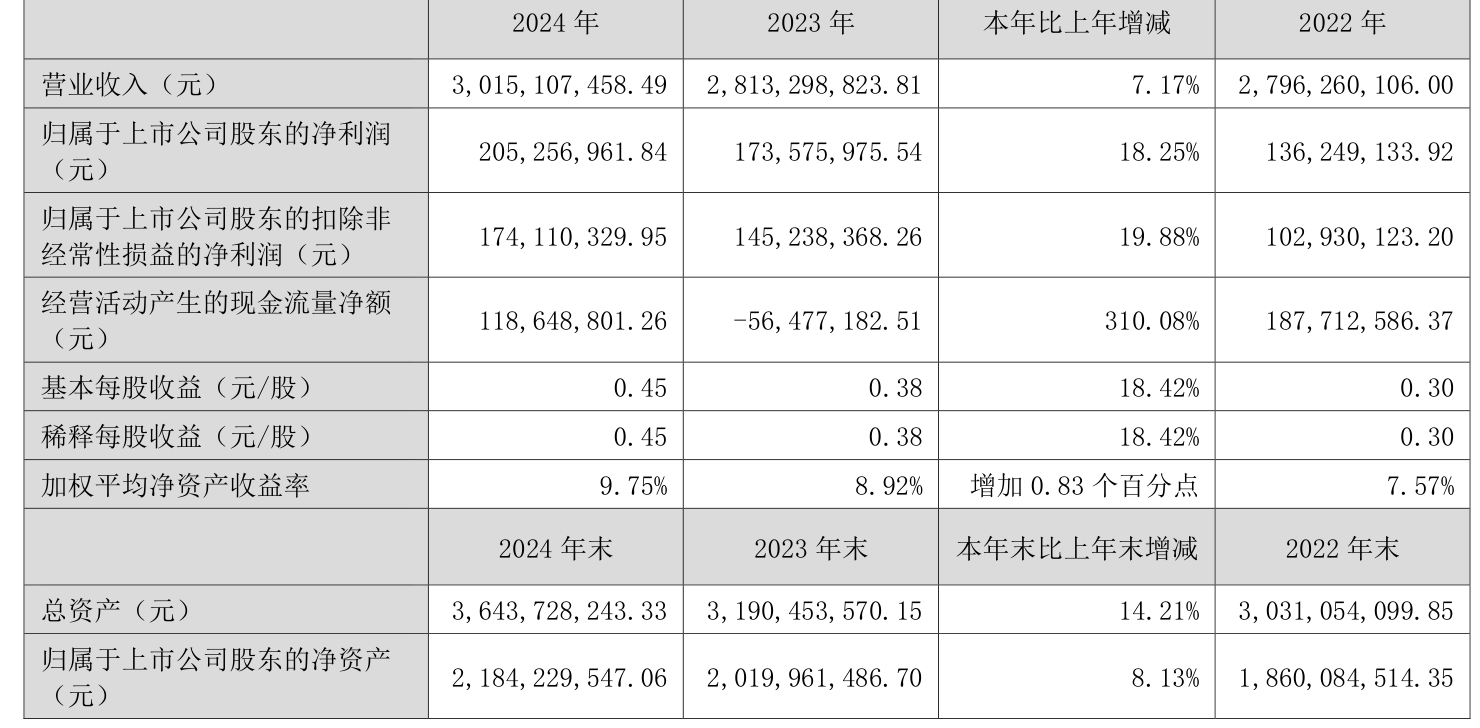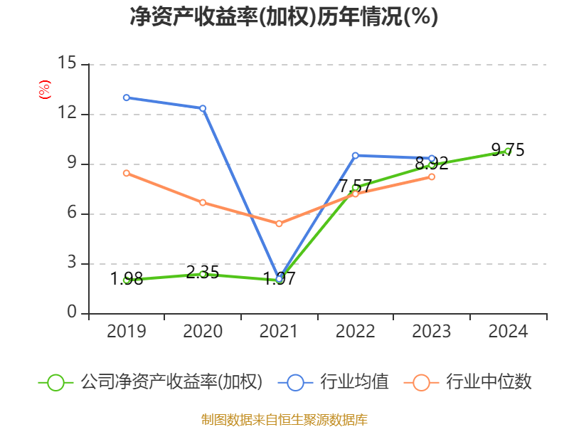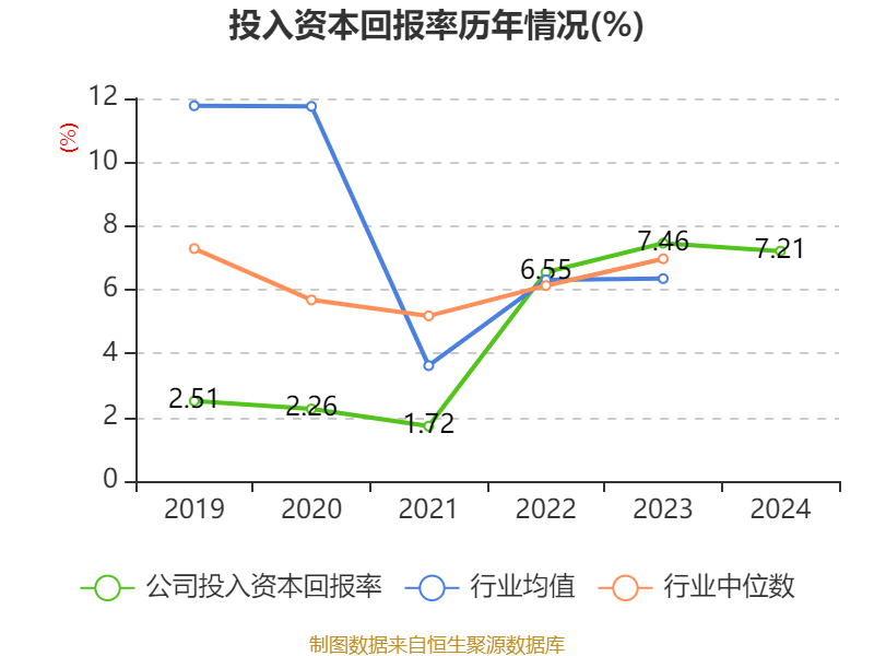 数据显示,2024年公司加权平均净资产收益率为9.75%,较上年同期上升0.83个百分点。公司2024年投入资本回报率为7.21%,较上年同期下降0.25个百分点。