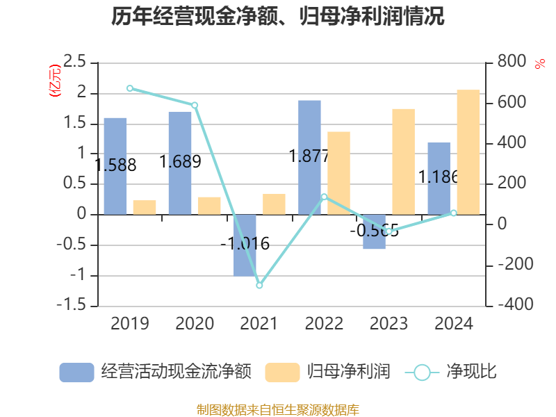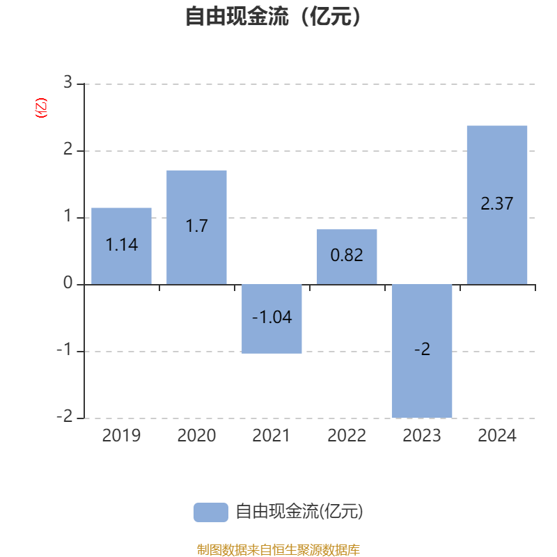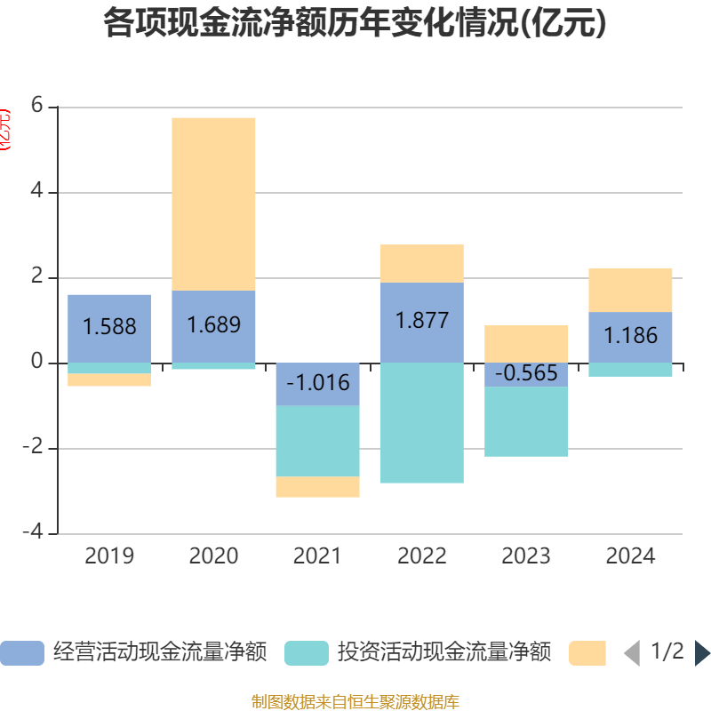 截至2024年,公司经营活动现金流净额为1.19亿元,同比增加1.75亿元;筹资活动现金流净额1.02亿元,同比增加1480.44万元;投资活动现金流净额-3307.24万元,上年同期为-1.64亿元。