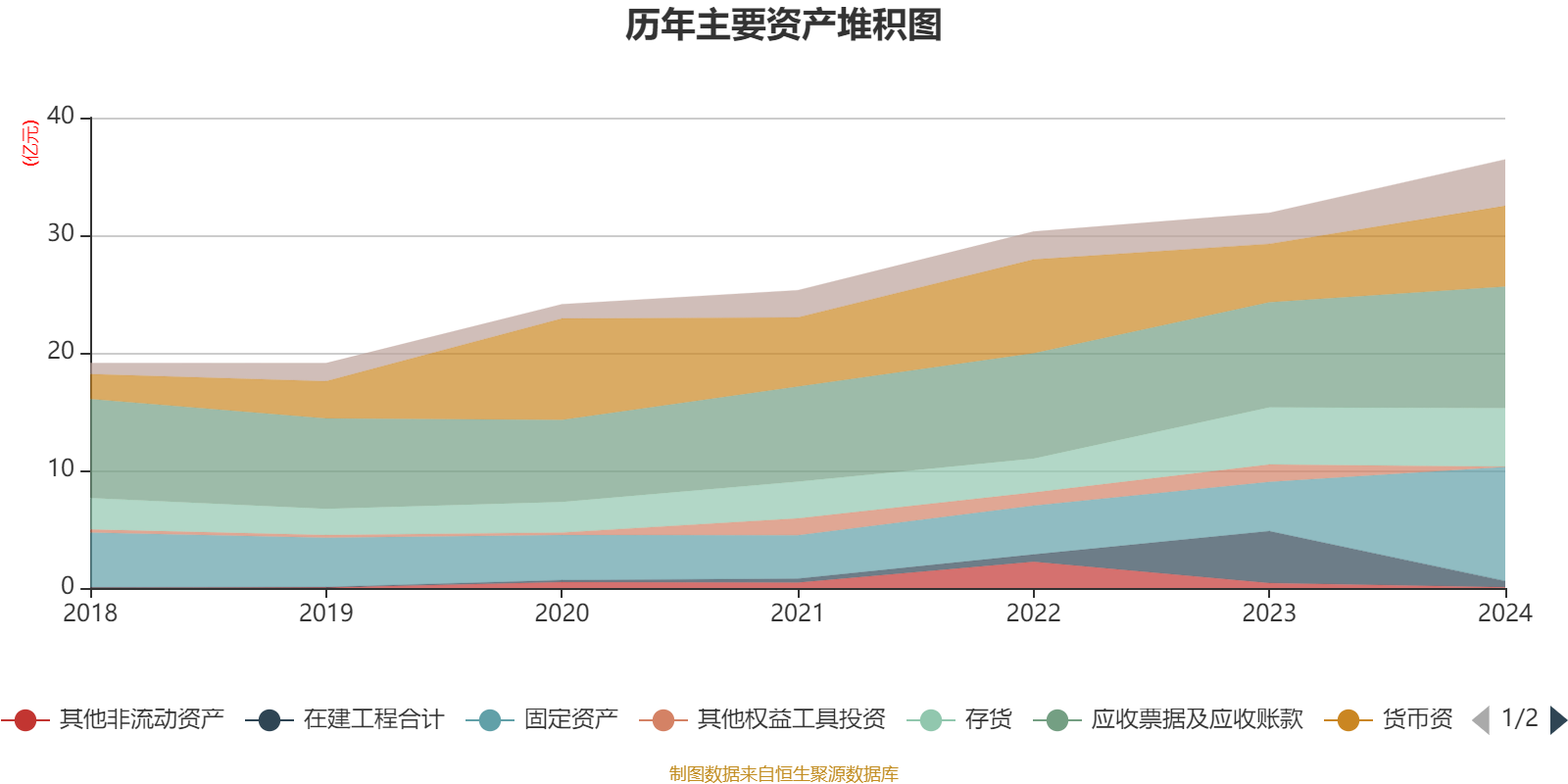 资产重大变化方面,截至2024年末,公司固定资产较上年末增加131.69%,占公司总资产比重上升13.5个百分点;在建工程合计较上年末减少88.17%,占公司总资产比重下降12.39个百分点;其他权益工具投资较上年末减少98.31%,占公司总资产比重下降4.56个百分点;货币资金较上年末增加38.39%,占公司总资产比重上升3.29个百分点。
