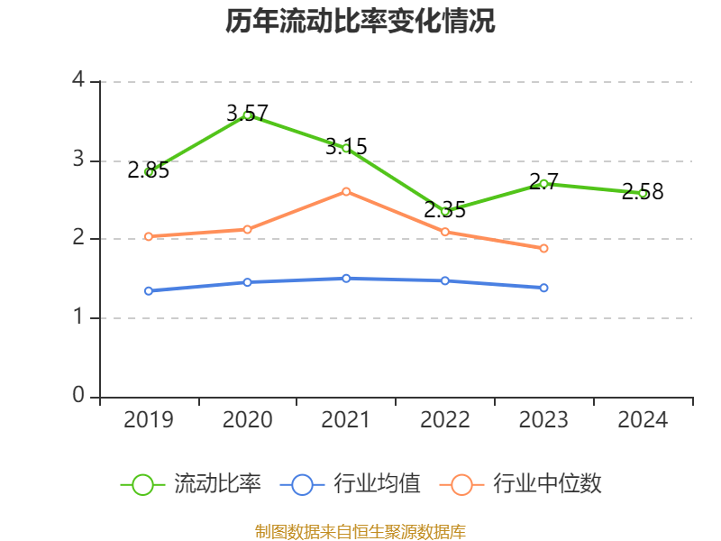 2024年,公司流动比率为2.58,速动比率为2.03。